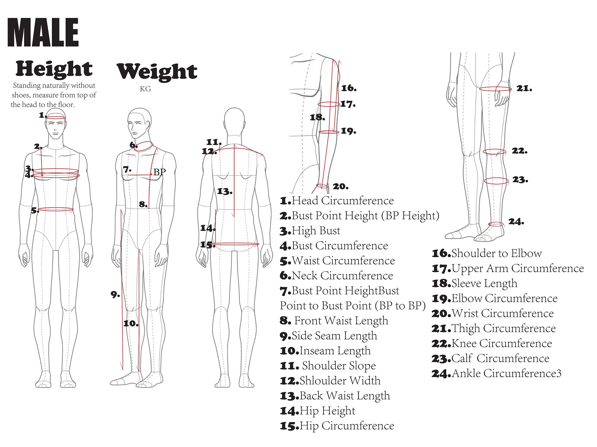 For the perfect fit, simply follow the measuring points shown in the diagram. Keep the tape level and close to your body, without pulling it tight. Remember to stand naturally and breathe normally as you measure.